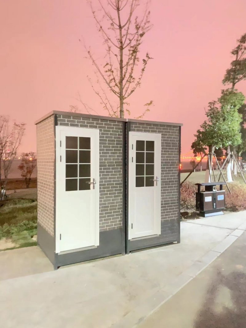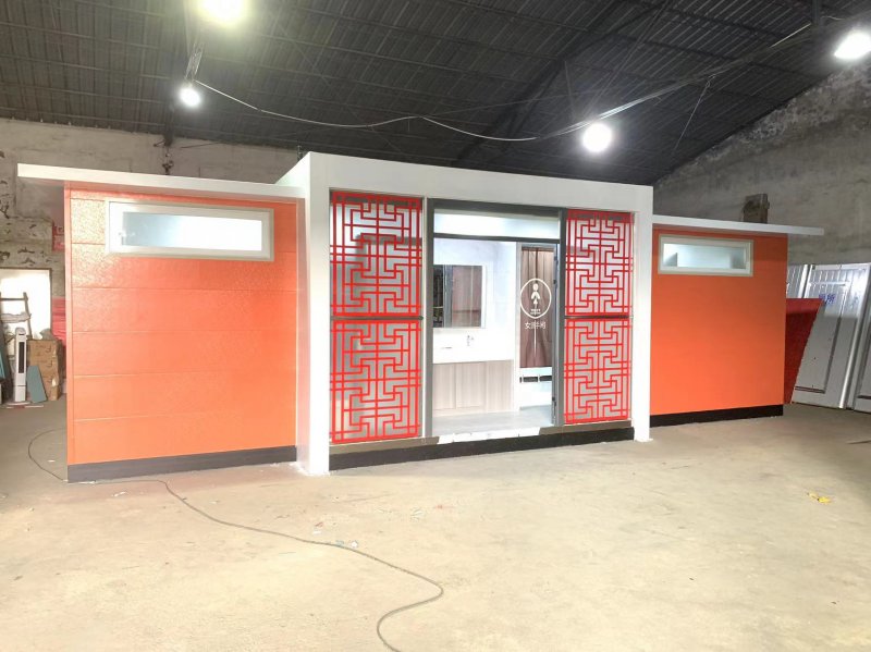 拼裝廁所;在廠里做好各個廁所部件,再到現(xiàn)場組裝在一齊,適合不易運輸?shù)拇笮蛶_@座箱式廁所,女廁5個蹲位內(nèi)配工具間,男廁2個蹲位+2小便斗,第三衛(wèi)生間由殘疾馬桶、助力洗手盆和兒童馬桶、兒童洗手盆外加嬰兒臺等設(shè)施。廁所前后有窗,通風采光,前部走廊裝有屋檐,防雨防曬。此廁所位于公路綠道邊,整體大氣,功能齊全,造型美觀,是一道難得的靚麗景觀!